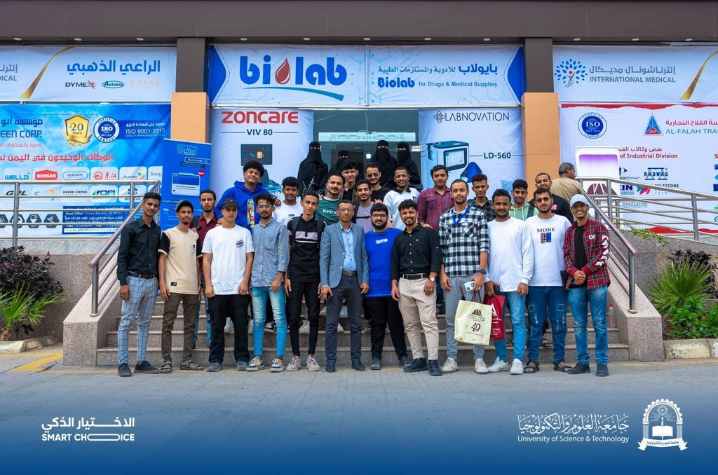 Biomedical engineering students conduct a field visit to the Aden Health medical exhibition.