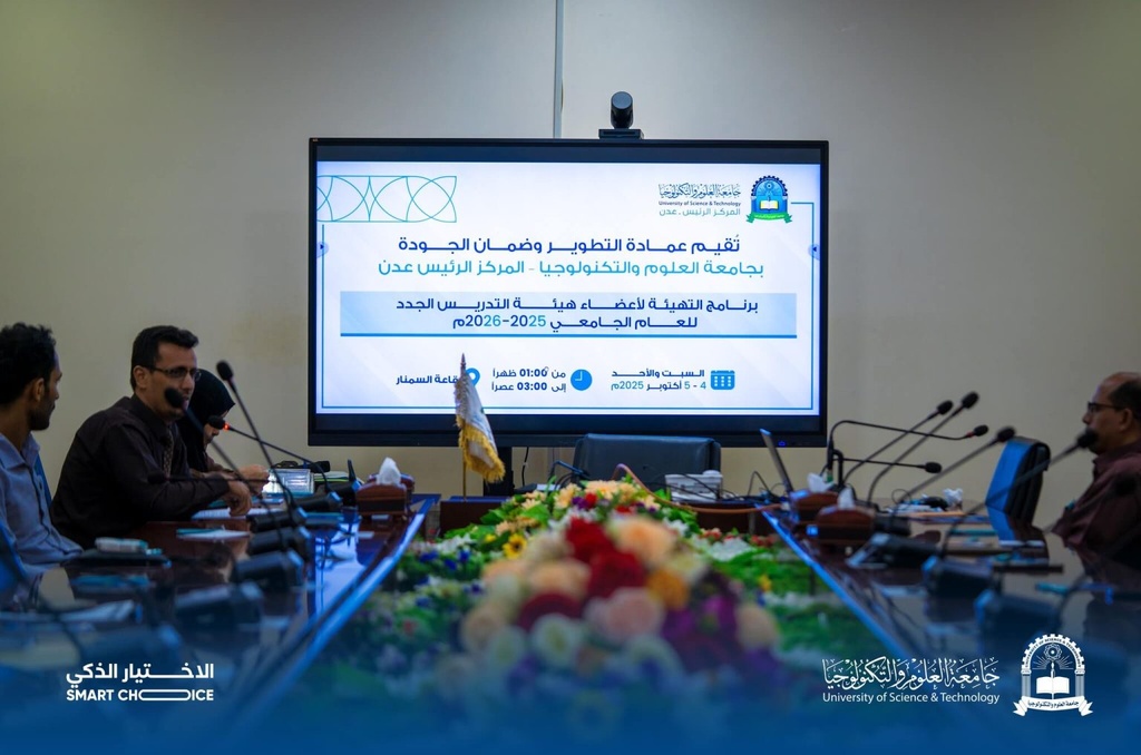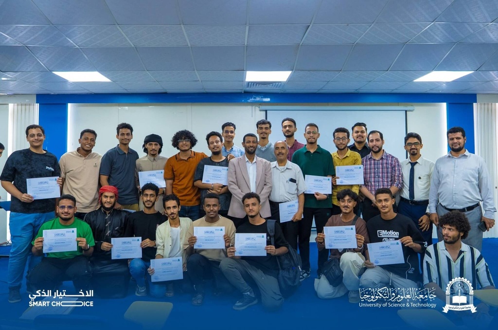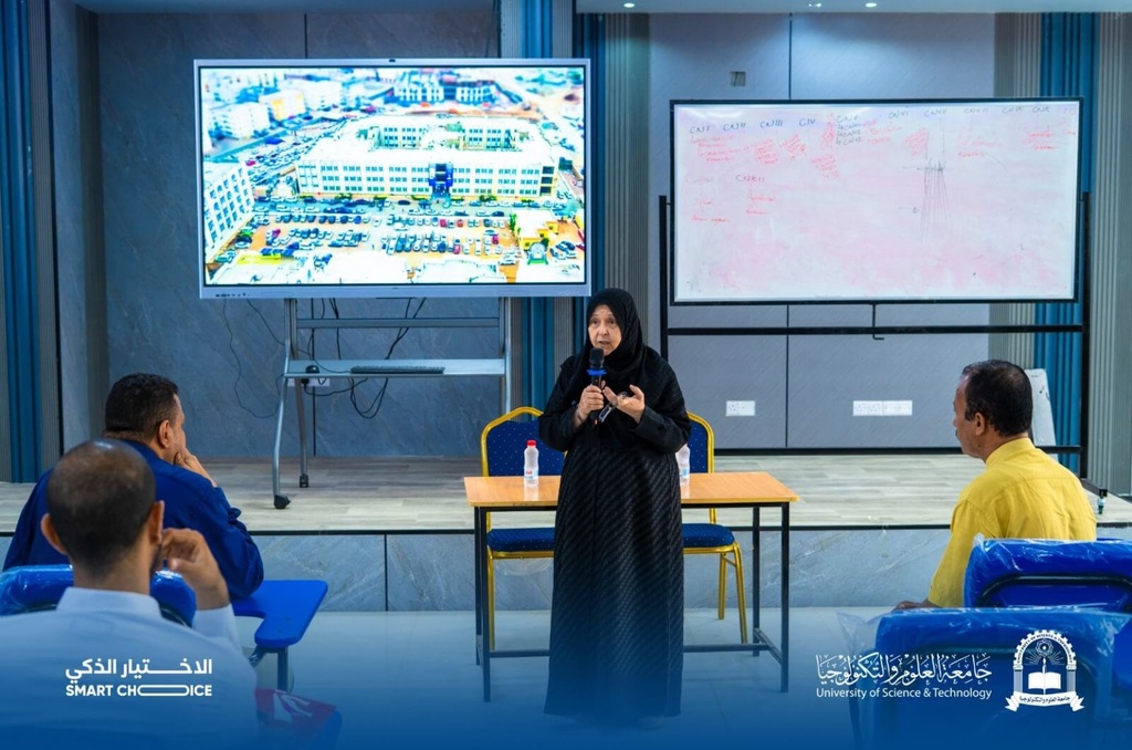 The Presidency of the University of Science and Technology - Aden honors participants in the 2025-2026 Academic Exhibition for University Majors.